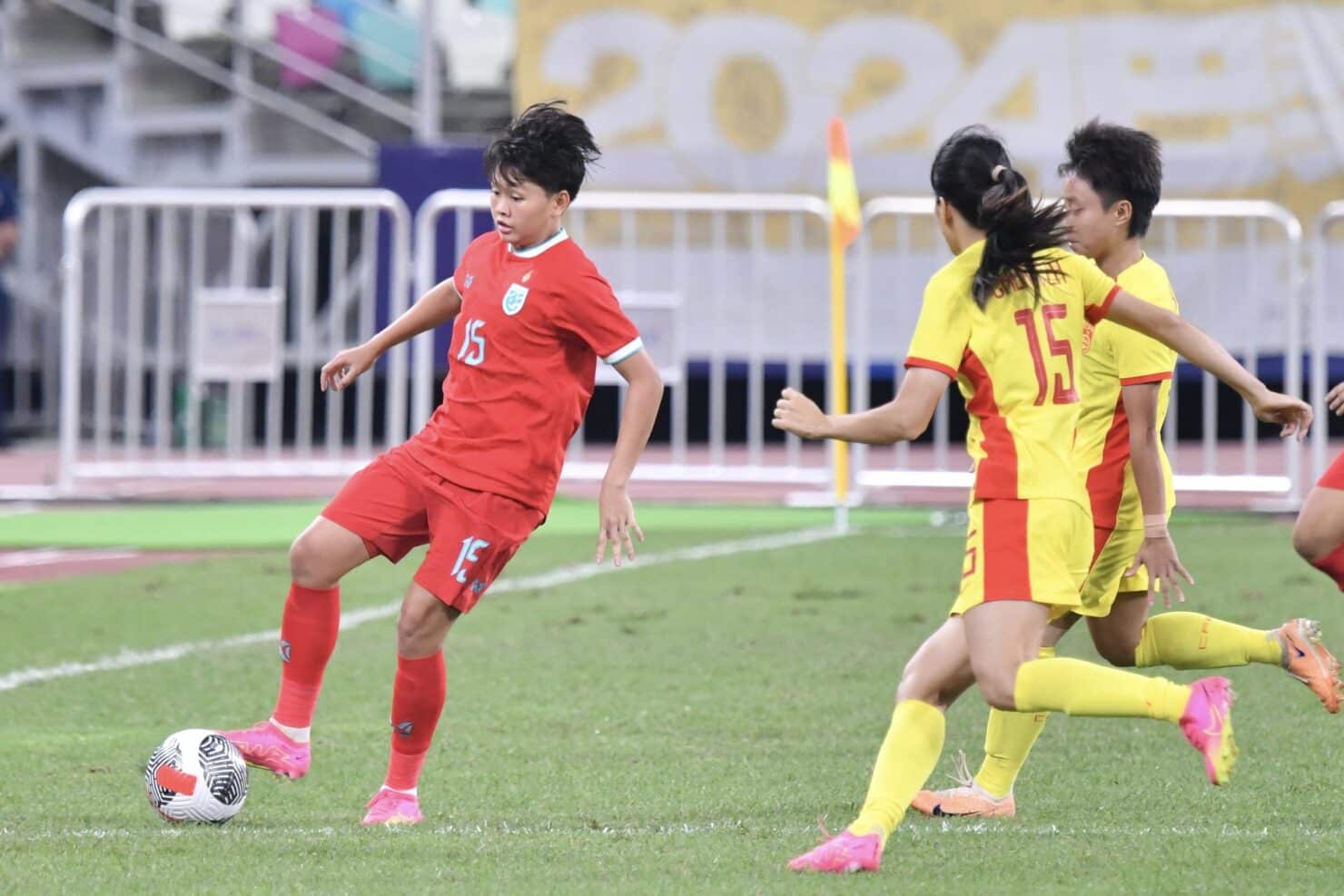 วันที่ 29 ตุลาคม 2566 เวลา 18.35 น. ตามเวลาประเทศไทย ณ เซียะเหมิน เอเกรต สเตเดียม การแข่งงขันฟุตบอลหญิง โอลิมปิก รอบคัดเลือก โซนเอเชีย รอบ 2 กลุ่มบี นัดที่ 2 ฟุตบอลหญิงทีมชาติไทย ลงสนามพบกับ ทีมชาติจีน โดย เกมแรก ชบาแก้ว พ่าย เกาหลีใต้ มา 1-10 ส่วนจีน แพ้ เกาหลีเหนือมา 1-2