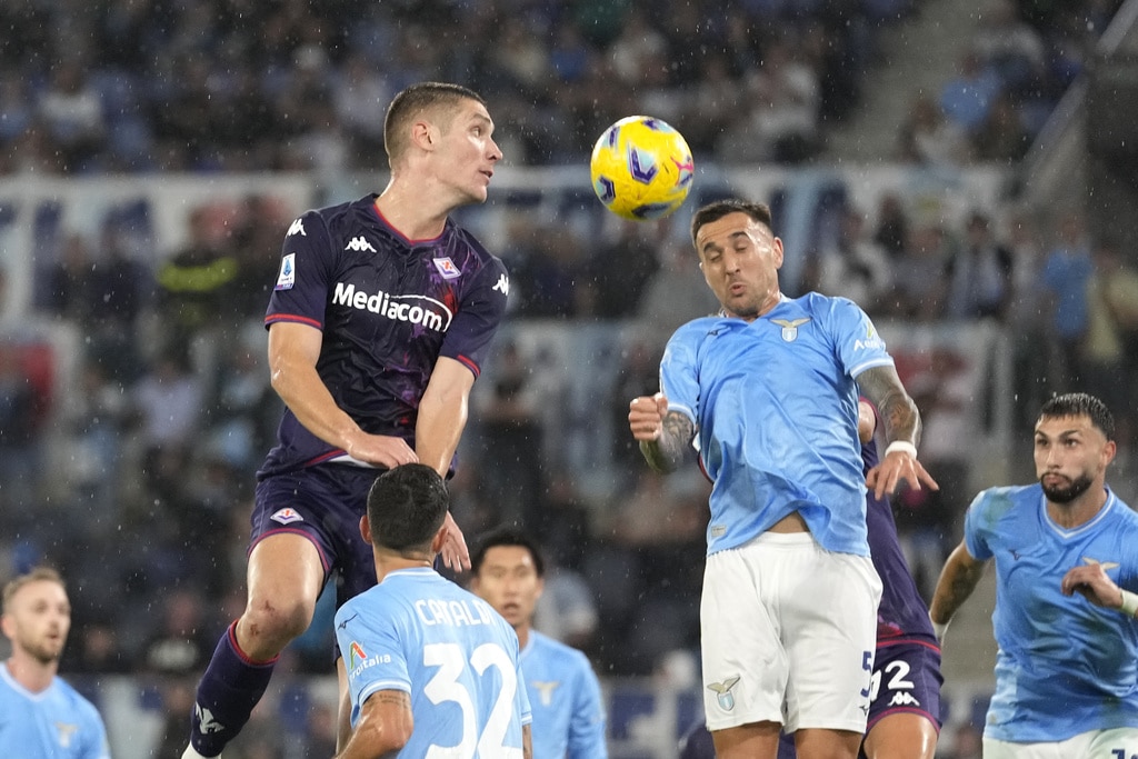 Lazio’s Ciro Immobile, centre, celebrates after scoring his side’s opening goal during the Serie A soccer match between Lazio and Fiorentina, at Rome’s Olympic Stadium, Italy, Monday, Oct. 30, 2023. (AP Photo/Andrew Medichini)Lazio’s Ciro Immobile, right, celebrates with Lazio’s Matias Vecino after scoring his side’s opening goal during the Serie A soccer match between Lazio and Fiorentina, at Rome’s Olympic Stadium, Italy, Monday, Oct. 30, 2023. (AP Photo/Andrew Medichini)Lazio’s Ciro Immobile celebrates after scoring his side’s opening goal during the Serie A soccer match between Lazio and Fiorentina, at Rome’s Olympic Stadium, Italy, Monday, Oct. 30, 2023. (AP Photo/Andrew Medichini)Fiorentina’s Jonathan Ikone, left, challenges for the ball with Lazio’s Adam Marusic during the Serie A soccer match between Lazio and Fiorentina, at Rome’s Olympic Stadium, Italy, Monday, Oct. 30, 2023. (AP Photo/Andrew Medichini)Fiorentina’s Nicolas Gonzalez heads the ball during the Serie A soccer match between Lazio and Fiorentina, at Rome’s Olympic Stadium, Italy, Monday, Oct. 30, 2023. (AP Photo/Andrew Medichini)Fiorentina’s Nikola Milenkovic, left, challenges for the ball with Lazio’s Matias Vecino during the Serie A soccer match between Lazio and Fiorentina, at Rome’s Olympic Stadium, Italy, Monday, Oct. 30, 2023. (AP Photo/Andrew Medichini)Fiorentina’s Nikola Milenkovic, left, challenges for the ball with Lazio’s Matias Vecino during the Serie A soccer match between Lazio and Fiorentina, at Rome’s Olympic Stadium, Italy, Monday, Oct. 30, 2023. (AP Photo/Andrew Medichini)Fiorentina’s Jonathan Ikone, left, challenges for the ball with Lazio’s Adam Marusic during the Serie A soccer match between Lazio and Fiorentina, at Rome’s Olympic Stadium, Italy, Monday, Oct. 30, 2023. (AP Photo/Andrew Medichini)Lazio’s Taty Castellanos, left, heads the ball ahead of Fiorentina’s Nikola Milenkovic during the Serie A soccer match between Lazio and Fiorentina, at Rome’s Olympic Stadium, Italy, Monday, Oct. 30, 2023. (AP Photo/Andrew Medichini)Fiorentina’s Cristiano Biraghi, left, challenges for the ball with Lazio’s Felipe Anderson during the Serie A soccer match between Lazio and Fiorentina, at Rome’s Olympic Stadium, Italy, Monday, Oct. 30, 2023. (AP Photo/Andrew Medichini)Fiorentina’s head coach Vincenzo Italiano reacts during the Serie A soccer match between Lazio and Fiorentina, at Rome’s Olympic Stadium, Italy, Monday, Oct. 30, 2023. (AP Photo/Andrew Medichini)Lazio’s Matteo Guendouzi, left, challenges for the ball with Fiorentina’s Cristiano Biraghi during the Serie A soccer match between Lazio and Fiorentina, at Rome’s Olympic Stadium, Italy, Monday, Oct. 30, 2023. (AP Photo/Andrew Medichini)Fiorentina’s Lucas Martinez Quarta, left, challenges for the ball with Lazio’s Felipe Anderson during the Serie A soccer match between Lazio and Fiorentina, at Rome’s Olympic Stadium, Italy, Monday, Oct. 30, 2023. (AP Photo/Andrew Medichini)Lazio’s Luis Alberto, right, reacts after missing a scoring chance during the Serie A soccer match between Lazio and Fiorentina, at Rome’s Olympic Stadium, Italy, Monday, Oct. 30, 2023. (AP Photo/Andrew Medichini)