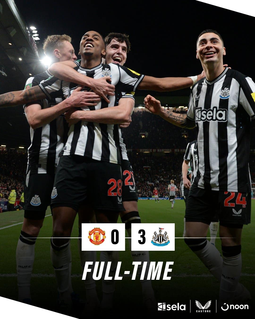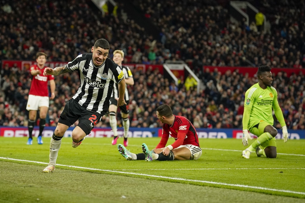 Newcastle’s Miguel Almiron, front, scores his side’s opening goal during the EFL Cup fourth round soccer match between Manchester United and Newcastle at Old Trafford stadium in Manchester, England, Wednesday, Nov. 1, 2023. (AP Photo/Dave Thompson)Manchester United’s head coach Erik ten Hag reacts after Newcastle’s Joe Willock scoring his side’s third goal during the EFL Cup fourth round soccer match between Manchester United and Newcastle at Old Trafford stadium in Manchester, England, Wednesday, Nov. 1, 2023. (AP Photo/Dave Thompson)Manchester United’s Antony, left, duels for the ball with Newcastle’s Joelinton during the EFL Cup fourth round soccer match between Manchester United and Newcastle at Old Trafford stadium in Manchester, England, Wednesday, Nov. 1, 2023. (AP Photo/Dave Thompson)Manchester United’s Sergio Reguilon, left, discusses with Manchester United’s Casemiro during the EFL Cup fourth round soccer match between Manchester United and Newcastle at Old Trafford stadium in Manchester, England, Wednesday, Nov. 1, 2023. (AP Photo/Dave Thompson)Manchester United’s Mason Mount wipes his face during the EFL Cup fourth round soccer match between Manchester United and Newcastle at Old Trafford stadium in Manchester, England, Wednesday, Nov. 1, 2023. (AP Photo/Dave Thompson)Manchester United’s Rasmus Hojlund reacts during the EFL Cup fourth round soccer match between Manchester United and Newcastle at Old Trafford stadium in Manchester, England, Wednesday, Nov. 1, 2023. (AP Photo/Dave Thompson)Manchester United’s head coach Erik ten Hag applauds at the end of EFL Cup fourth round soccer match between Manchester United and Newcastle at Old Trafford stadium in Manchester, England, Wednesday, Nov. 1, 2023. (AP Photo/Dave Thompson)Manchester United’s Mason Mount leaves the pitch after the EFL Cup fourth round soccer match between Manchester United and Newcastle at Old Trafford stadium in Manchester, England, Wednesday, Nov. 1, 2023. (AP Photo/Dave Thompson)Manchester United’s Harry Maguire applauds at the end of EFL Cup fourth round soccer match between Manchester United and Newcastle at Old Trafford stadium in Manchester, England, Wednesday, Nov. 1, 2023. (AP Photo/Dave Thompson)Newcastle’s Matt Ritchie, front left, and Newcastle’s Callum Wilson celebrate at the end of EFL Cup fourth round soccer match between Manchester United and Newcastle at Old Trafford stadium in Manchester, England, Wednesday, Nov. 1, 2023. (AP Photo/Dave Thompson)Manchester United’s Marcus Rashford applauds at the end of EFL Cup fourth round soccer match between Manchester United and Newcastle at Old Trafford stadium in Manchester, England, Wednesday, Nov. 1, 2023. (AP Photo/Dave Thompson)Newcastle’s Joe Willock scores his side’s third goal during the EFL Cup fourth round soccer match between Manchester United and Newcastle at Old Trafford stadium in Manchester, England, Wednesday, Nov. 1, 2023. (AP Photo/Dave Thompson)Manchester United’s Alejandro Garnacho reacts after Newcastle’s Joe Willock scoring his side’s third goal during the EFL Cup fourth round soccer match between Manchester United and Newcastle at Old Trafford stadium in Manchester, England, Wednesday, Nov. 1, 2023. (AP Photo/Dave Thompson)Newcastle’s Miguel Almiron, left, celebrates after scoring his side’s opening goal during the EFL Cup fourth round soccer match between Manchester United and Newcastle at Old Trafford stadium in Manchester, England, Wednesday, Nov. 1, 2023. (AP Photo/Dave Thompson)Newcastle’s Lewis Hall celebrates with teammates after scoring his side’s second goal during the EFL Cup fourth round soccer match between Manchester United and Newcastle at Old Trafford stadium in Manchester, England, Wednesday, Nov. 1, 2023. (AP Photo/Dave Thompson)