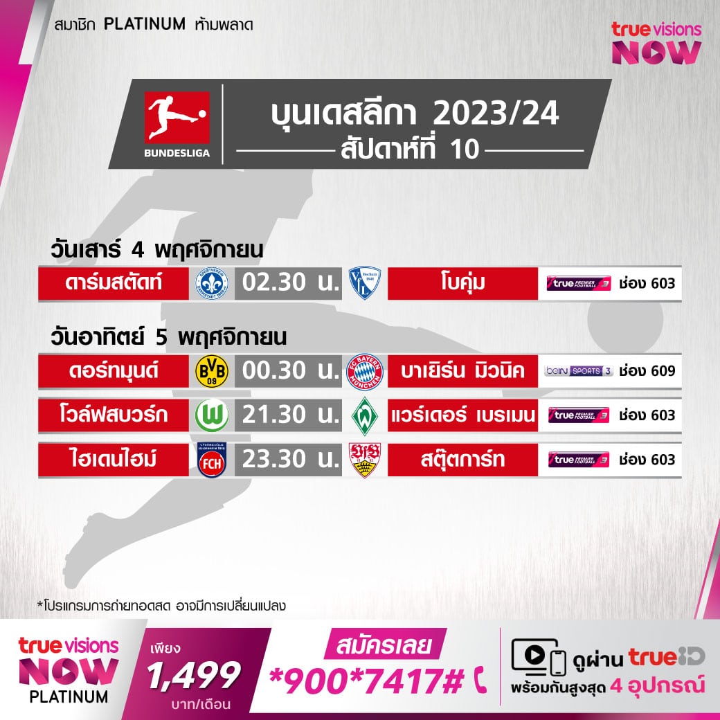 - 00:30 ดอร์ทมุนด์ พบ บาเยิร์น PPTV / beIN Sports 3