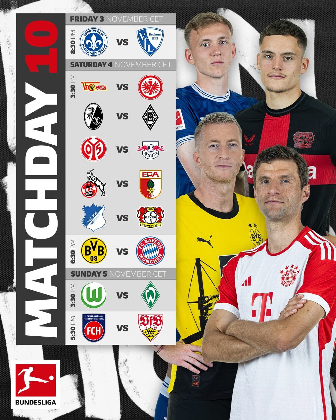 โปรแกรม บุนเดสลีกาเยอรมัน ประจำฤดูกาล 2023/24 สัปดาห์ที่ 10 ทุกคู่