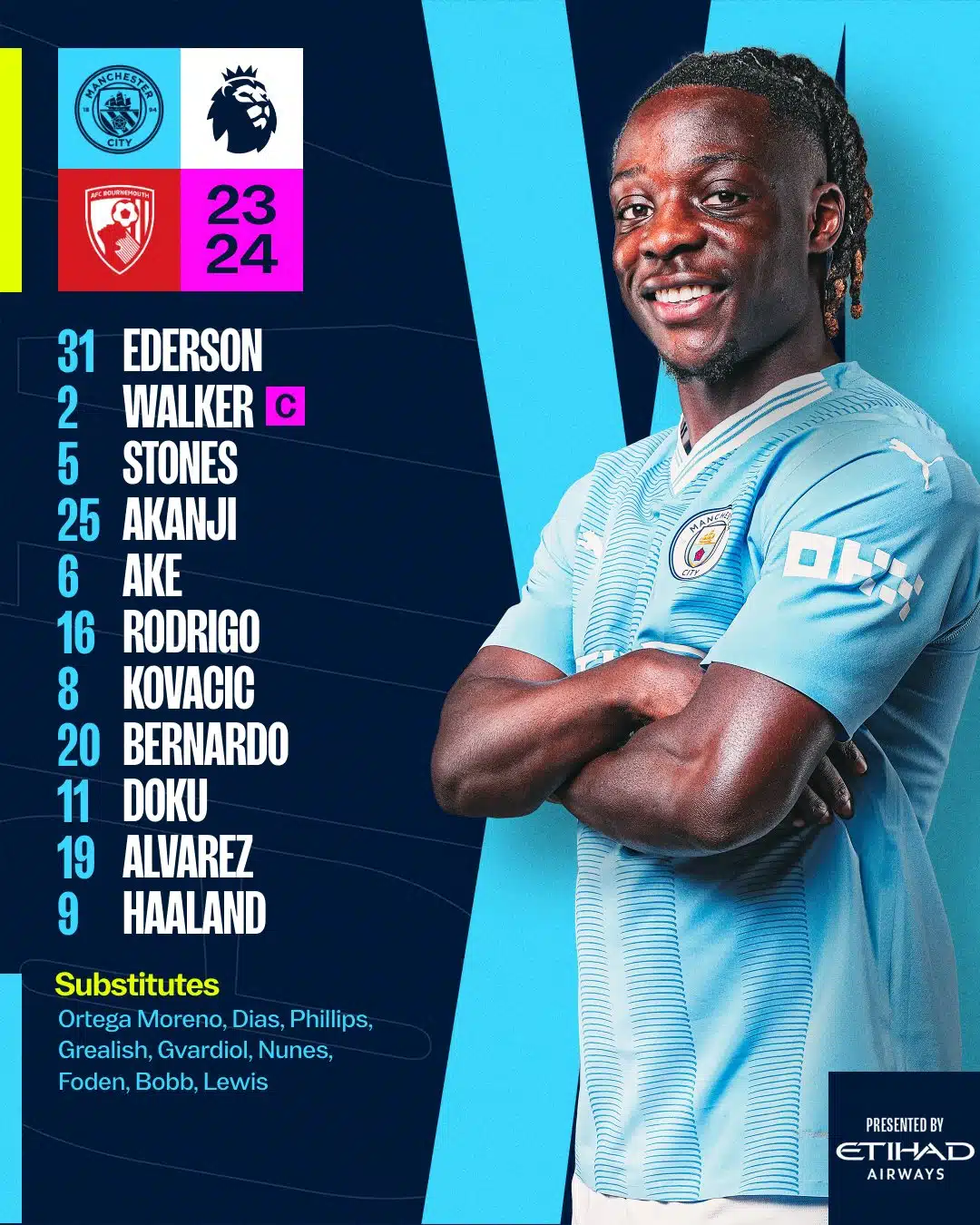 4 พฤศจิกายน 2566 รายชื่อผู้เล่น 11 ตัวจริง แมนซิตี้ พบ บอร์นมัธ ศึกฟุตบอล พรีเมียร์ลีก ฤดูกาล 2023-24 คืนนี้ ลิงก์ถูกลิขสิทธิ์ ดูบอลสดออนไลน์ ทาง True Premier Football เวลา 22:00 น.
