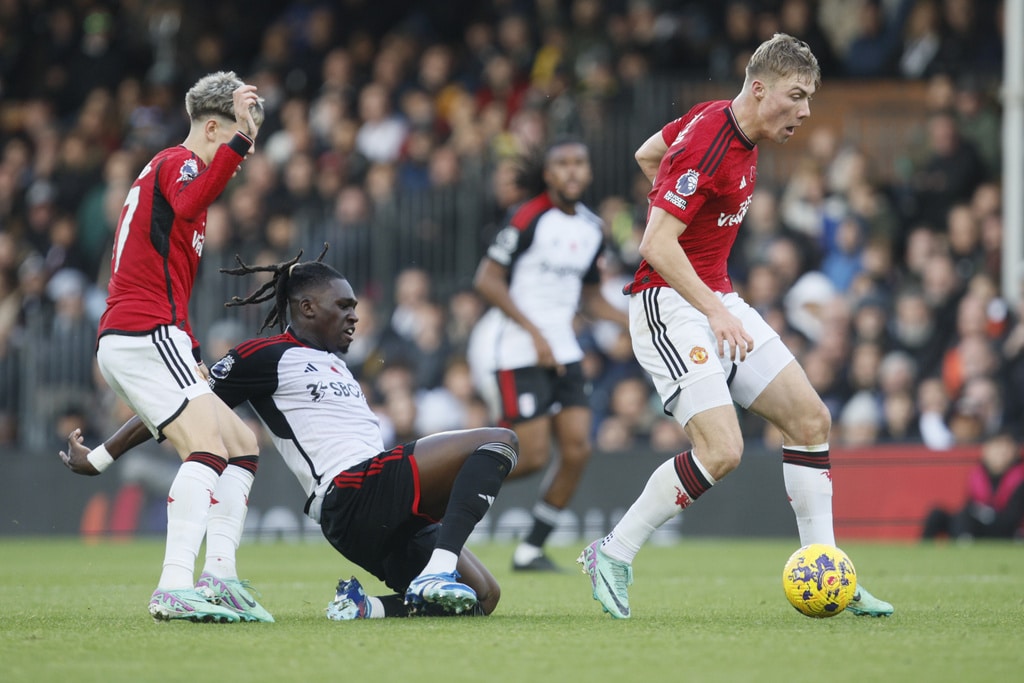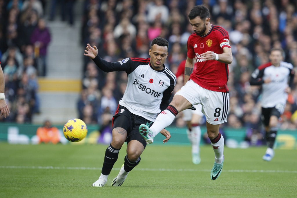 Fulham’s Rodrigo Muniz, left, challenges for the ball with Manchester United’s Bruno Fernandes during the English Premier League soccer match between Fulham and Manchester United, at Craven Cottage, London, Saturday, Nov. 4, 2023. (AP Photo/David Cliff)Manchester United’s Bruno Fernandes celebrates after scoring his side’s opening goal during the English Premier League soccer match between Fulham and Manchester United, at Craven Cottage, London, Saturday, Nov. 4, 2023. (AP Photo/David Cliff)Manchester United’s Bruno Fernandes, left, celebrates after scoring his side’s opening goal during the English Premier League soccer match between Fulham and Manchester United, at Craven Cottage, London, Saturday, Nov. 4, 2023. (AP Photo/David Cliff)Manchester United’s Bruno Fernandes, right, celebrates after scoring his side’s opening goal during the English Premier League soccer match between Fulham and Manchester United, at Craven Cottage, London, Saturday, Nov. 4, 2023. (AP Photo/David Cliff)Manchester United’s Bruno Fernandes, centre, celebrates after scoring his side’s opening goal during the English Premier League soccer match between Fulham and Manchester United, at Craven Cottage, London, Saturday, Nov. 4, 2023. (AP Photo/David Cliff)Manchester United’s Facundo Pellistri, left, challenges for the ball with Fulham’s Antonee Robinson during the English Premier League soccer match between Fulham and Manchester United, at Craven Cottage, London, Saturday, Nov. 4, 2023. (AP Photo/David Cliff)Fulham’s Alex Iwobi, centre, challenges for the ball with Manchester United’s Alejandro Garnacho during the English Premier League soccer match between Fulham and Manchester United, at Craven Cottage, London, Saturday, Nov. 4, 2023. (AP Photo/David Cliff)Fulham’s Calvin Bassey, centre, challenges for the ball with Manchester United’s Alejandro Garnacho, left, and Manchester United’s Rasmus Hojlund during the English Premier League soccer match between Fulham and Manchester United, at Craven Cottage, London, Saturday, Nov. 4, 2023. (AP Photo/David Cliff)Fulham’s Calvin Bassey, left, challenges for the ball with Manchester United’s Rasmus Hojlund during the English Premier League soccer match between Fulham and Manchester United, at Craven Cottage, London, Saturday, Nov. 4, 2023. (AP Photo/David Cliff)Manchester United’s Harry Maguire in action during the English Premier League soccer match between Fulham and Manchester United, at Craven Cottage, London, Saturday, Nov. 4, 2023. (AP Photo/David Cliff)Manchester United’s Aaron Wan-Bissaka, left, challenges for the ball with Fulham’s Joao Palhinha during the English Premier League soccer match between Fulham and Manchester United, at Craven Cottage, London, Saturday, Nov. 4, 2023. (AP Photo/David Cliff)Manchester United’s head coach Erik ten Hag waits for the start of the English Premier League soccer match between Fulham and Manchester United, at Craven Cottage, London, Saturday, Nov. 4, 2023. (AP Photo/David Cliff)Fulham’s Timothy Castagne, left, challenges for the ball with Manchester United’s Alejandro Garnacho during the English Premier League soccer match between Fulham and Manchester United, at Craven Cottage, London, Saturday, Nov. 4, 2023. (AP Photo/David Cliff)Manchester United’s Jonny Evans, right, Fulham’s Rodrigo Muniz, centre, Manchester United’s Diogo Dalot in action during the English Premier League soccer match between Fulham and Manchester United, at Craven Cottage, London, Saturday, Nov. 4, 2023. (AP Photo/David Cliff)Manchester United’s Christian Eriksen, left, challenges for the ball with Fulham’s Alex Iwobi, centre, during the English Premier League soccer match between Fulham and Manchester United, at Craven Cottage, London, Saturday, Nov. 4, 2023. (AP Photo/David Cliff)Fulham’s Alex Iwobi, left, challenges for the ball with Manchester United’s Christian Eriksen during the English Premier League soccer match between Fulham and Manchester United, at Craven Cottage, London, Saturday, Nov. 4, 2023. (AP Photo/David Cliff)Manchester United’s Jonny Evans, right, challenges for the ball with Fulham’s Rodrigo Muniz during the English Premier League soccer match between Fulham and Manchester United, at Craven Cottage, London, Saturday, Nov. 4, 2023. (AP Photo/David Cliff)Manchester United’s Scott McTominay, second right, scores his side’s opening goal during the English Premier League soccer match between Fulham and Manchester United, at Craven Cottage, London, Saturday, Nov. 4, 2023. (AP Photo/David Cliff)