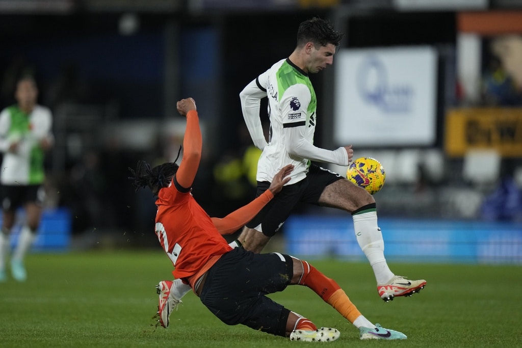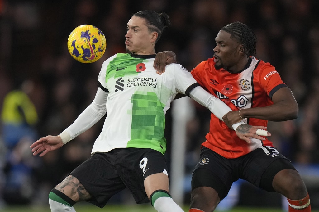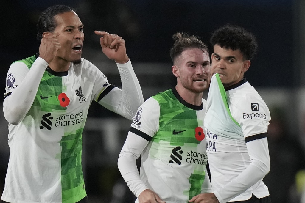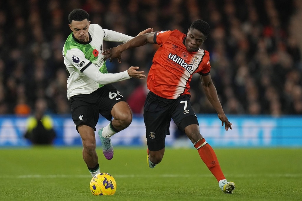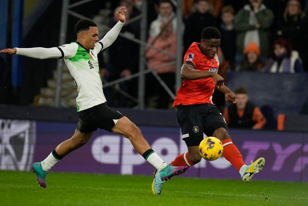Liverpool’s Luis Diaz celebrates after scoring his side’s first goal during the English Premier League soccer match between Luton Town and Liverpool, at Kenilworth Road, in Luton, England, Sunday, Nov. 5, 2023. (Alastair Grant)Liverpool’s Trent Alexander-Arnold watches during the English Premier League soccer match between Luton Town and Liverpool, at Kenilworth Road, in Luton, England, Sunday, Nov. 5, 2023. (Alastair Grant)Luton Town’s Tahith Chong scores his side’s first goal during the English Premier League soccer match between Luton Town and Liverpool, at Kenilworth Road, in Luton, England, Sunday, Nov. 5, 2023. (Alastair Grant)Liverpool’s Ryan Gravenberch, center, challenges for the ball with Luton Town’s Ross Barkley, left, and his teammate Andros Townsend during the English Premier League soccer match between Luton Town and Liverpool, at Kenilworth Road, in Luton, England, Sunday, Nov. 5, 2023. (Alastair Grant)Luton Town’s Carlton Morris makes an attempt to score during the English Premier League soccer match between Luton Town and Liverpool, at Kenilworth Road, in Luton, England, Sunday, Nov. 5, 2023. (Alastair Grant)Luton Town’s Issa Kabore, left, is talked by Liverpool’s Diogo Jota during the English Premier League soccer match between Luton Town and Liverpool, at Kenilworth Road, in Luton, England, Sunday, Nov. 5, 2023. (Alastair Grant)Liverpool’s Trent Alexander-Arnold, left, challenges for the ball with Luton Town’s Chiedozie Ogbene during the English Premier League soccer match between Luton Town and Liverpool, at Kenilworth Road, in Luton, England, Sunday, Nov. 5, 2023. (Alastair Grant)Liverpool’s Dominik Szoboszlai, right, challenges for the ball with Luton Town’s Gabriel Osho during the English Premier League soccer match between Luton Town and Liverpool, at Kenilworth Road, in Luton, England, Sunday, Nov. 5, 2023. (Alastair Grant)Liverpool’s Dominik Szoboszlai heads the ball during the English Premier League soccer match between Luton Town and Liverpool, at Kenilworth Road, in Luton, England, Sunday, Nov. 5, 2023. (Alastair Grant)Liverpool’s Trent Alexander-Arnold, left, challenges for the ball with Luton Town’s Chiedozie Ogbene during the English Premier League soccer match between Luton Town and Liverpool, at Kenilworth Road, in Luton, England, Sunday, Nov. 5, 2023. (Alastair Grant)Liverpool’s Darwin Nunez, left, challenges for the ball with Luton Town’s Teden Mengi during the English Premier League soccer match between Luton Town and Liverpool, at Kenilworth Road, in Luton, England, Sunday, Nov. 5, 2023. (Alastair Grant)Liverpool’s Luis Diaz heads the ball to score his side’s first goal during the English Premier League soccer match between Luton Town and Liverpool, at Kenilworth Road, in Luton, England, Sunday, Nov. 5, 2023. (Alastair Grant)Liverpool’s Luis Diaz celebrates after scoring his side’s first goal during the English Premier League soccer match between Luton Town and Liverpool, at Kenilworth Road, in Luton, England, Sunday, Nov. 5, 2023.Luis Diaz has returned to Liverpool’s squad for its Premier League match against Luton with his father still missing after being kidnapped by a guerrilla group in Colombia. (Alastair Grant)Liverpool’s Luis Diaz, left, challenges for the ball with Luton Town’s Tahith Chong during the English Premier League soccer match between Luton Town and Liverpool, at Kenilworth Road, in Luton, England, Sunday, Nov. 5, 2023. (Alastair Grant)Liverpool’s Luis Diaz celebrates with his teammates after scoring his side’s first goal during the English Premier League soccer match between Luton Town and Liverpool, at Kenilworth Road, in Luton, England, Sunday, Nov. 5, 2023. (Alastair Grant)Liverpool’s Luis Diaz celebrates at the end of the English Premier League soccer match between Luton Town and Liverpool, at Kenilworth Road, in Luton, England, Sunday, Nov. 5, 2023. (Alastair Grant)