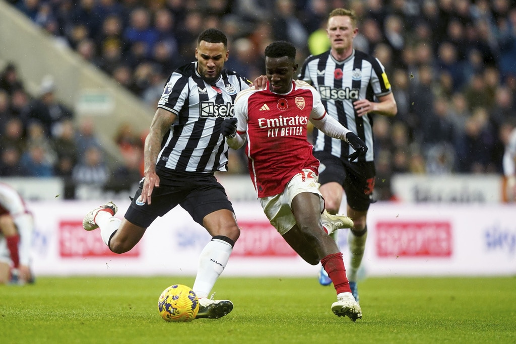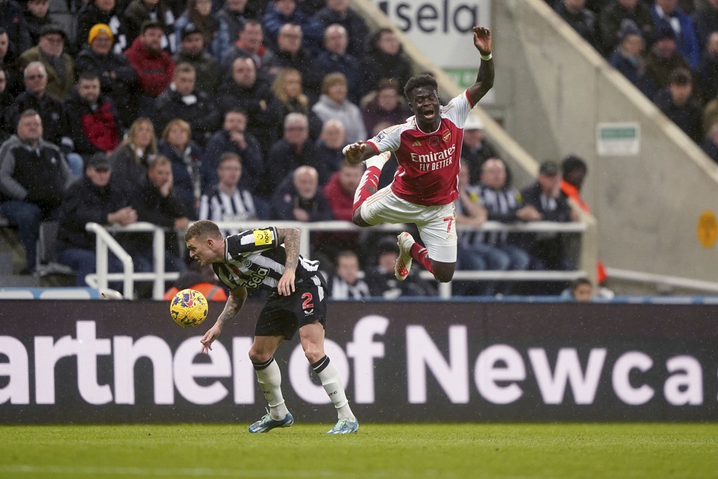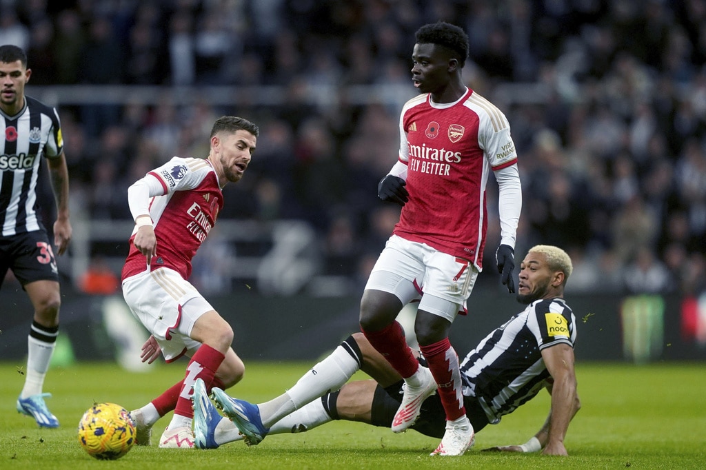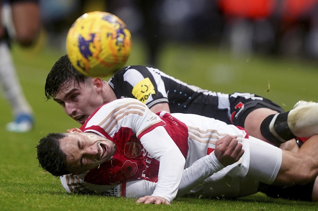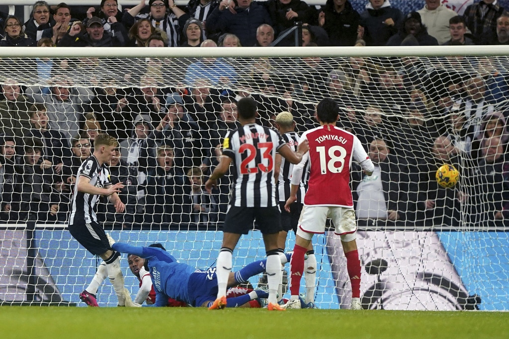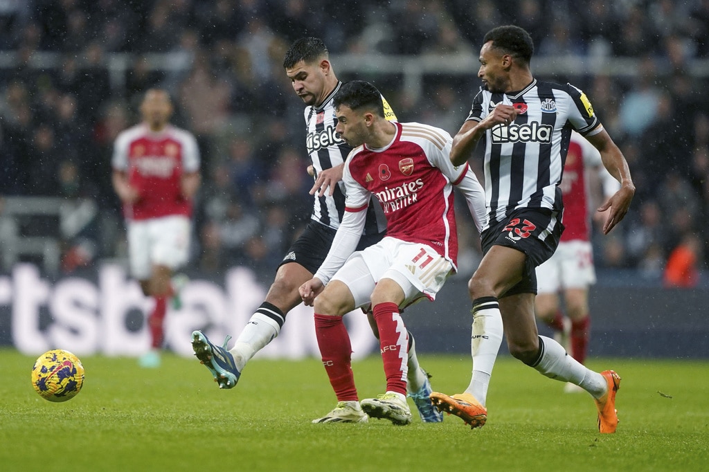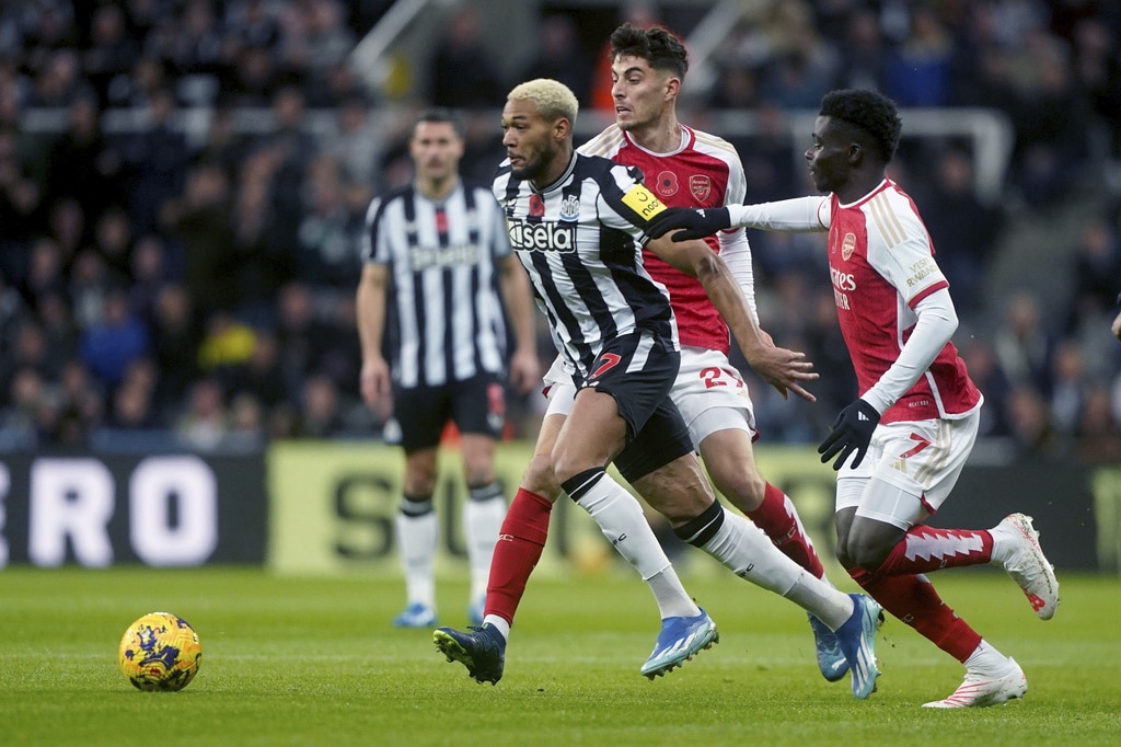 Newcastle United’s Joelinton, right, Arsenal’s Bukayo Saka, centre and Jorginho, left, vie for the ball, during the English Premier League soccer match between Newcastle United and Arsenal at St. James’ Park, in Newcastle upon Tyne, England, Saturday, Nov. 4, 2023. (Owen Humphreys/PA via AP)Newcastle United’s Anthony Gordon celebrates following the English Premier League soccer match between Newcastle United and Arsenal at St. James’ Park, in Newcastle upon Tyne, England, Saturday, Nov. 4, 2023. (Owen Humphreys/PA via AP)Newcastle United’s Tino Livramento, background, fouls Arsenal’s Gabriel Martinelli, during the English Premier League soccer match between Newcastle United and Arsenal at St. James’ Park, in Newcastle upon Tyne, England, Saturday, Nov. 4, 2023. (Owen Humphreys/PA via AP)Arsenal’s Gabriel Martinelli, centre, passes the ball away from Newcastle United’s Bruno Guimaraes, left and Newcastle United’s Jacob Murphy, during the English Premier League soccer match between Newcastle United and Arsenal at St. James’ Park, in Newcastle upon Tyne, England, Saturday, Nov. 4, 2023. (Owen Humphreys/PA via AP)Newcastle United’s Anthony Gordon scores his side’s first goal , during the English Premier League soccer match between Newcastle United and Arsenal at St. James’ Park, in Newcastle upon Tyne, England, Saturday, Nov. 4, 2023. (Owen Humphreys/PA via AP)Newcastle United’s Jamaal Lacselles, left and Arsenal’s Edward Nketiah vie for the ball, during the English Premier League soccer match between Newcastle United and Arsenal at St. James’ Park, in Newcastle upon Tyne, England, Saturday, Nov. 4, 2023. (Owen Humphreys/PA via AP)Newcastle United’s Kieran Trippier, left and Arsenal’s Bukayo Saka vie for the ball, during the English Premier League soccer match between Newcastle United and Arsenal at St. James’ Park, in Newcastle upon Tyne, England, Saturday, Nov. 4, 2023. (Owen Humphreys/PA via AP)Newcastle United’s Anthony Gordon, left and Arsenal’s William Saliba battle for the ball, during the English Premier League soccer match between Newcastle United and Arsenal at St. James’ Park, in Newcastle upon Tyne, England, Saturday, Nov. 4, 2023. (Owen Humphreys/PA via AP)Newcastle United’s Callum Wilson, second left and Arsenal’s William Saliba, centre, vie for the ball, during the English Premier League soccer match between Newcastle United and Arsenal at St. James’ Park, in Newcastle upon Tyne, England, Saturday, Nov. 4, 2023. (Owen Humphreys/PA via AP)Newcastle United’s Callum Wilson shoots towards goal, during the English Premier League soccer match between Newcastle United and Arsenal at St. James’ Park, in Newcastle upon Tyne, England, Saturday, Nov. 4, 2023. (Owen Humphreys/PA via AP)Newcastle United’s Anthony Gordon, right and Arsenal’s Ben White vie for the ball, during the English Premier League soccer match between Newcastle United and Arsenal at St. James’ Park, in Newcastle upon Tyne, England, Saturday, Nov. 4, 2023. (Owen Humphreys/PA via AP)Newcastle United’s Joelinton, foreground, vies for the ball with Arsenal’s Kai Havertz, centre and Arsenal’s Bukayo Saka, during the English Premier League soccer match between Newcastle United and Arsenal at St. James’ Park, in Newcastle upon Tyne, England, Saturday, Nov. 4, 2023. (Owen Humphreys/PA via AP)