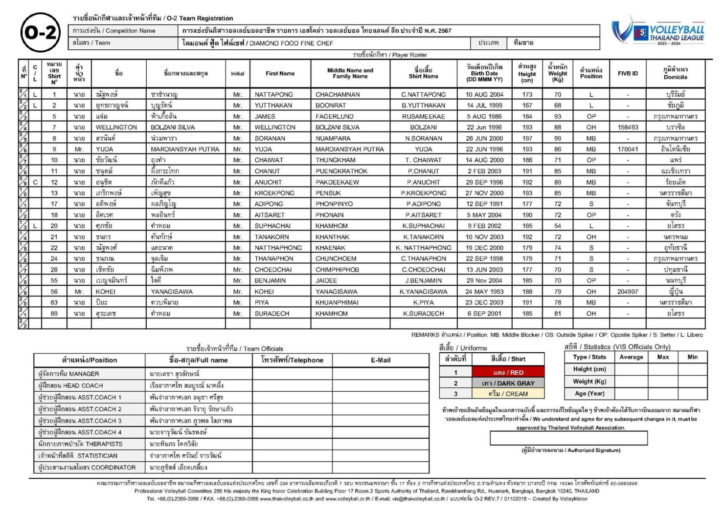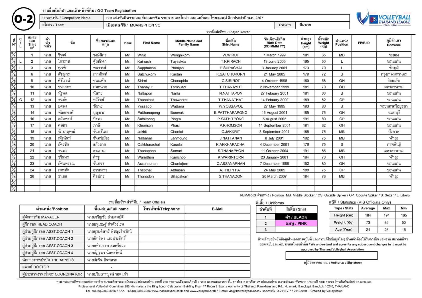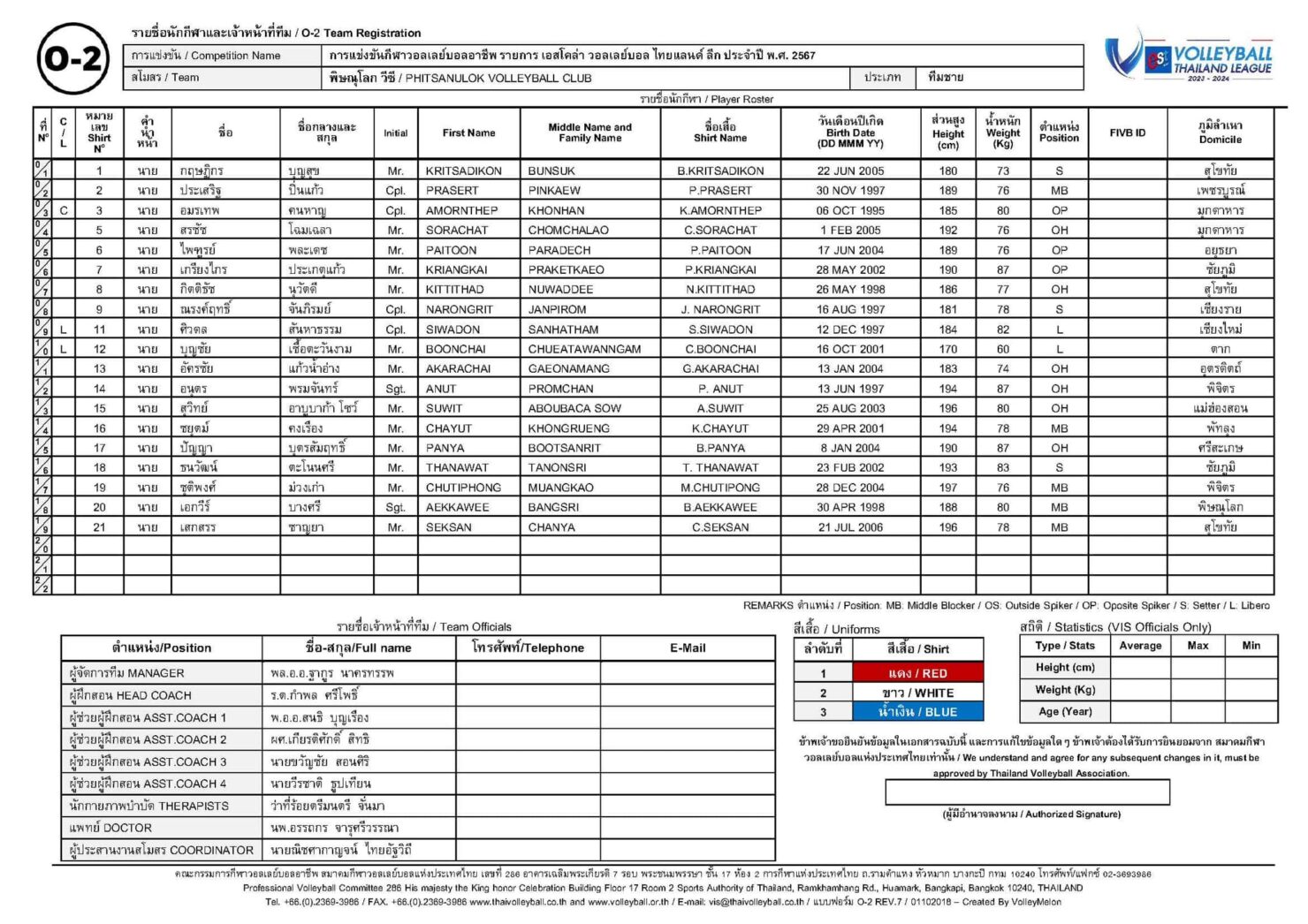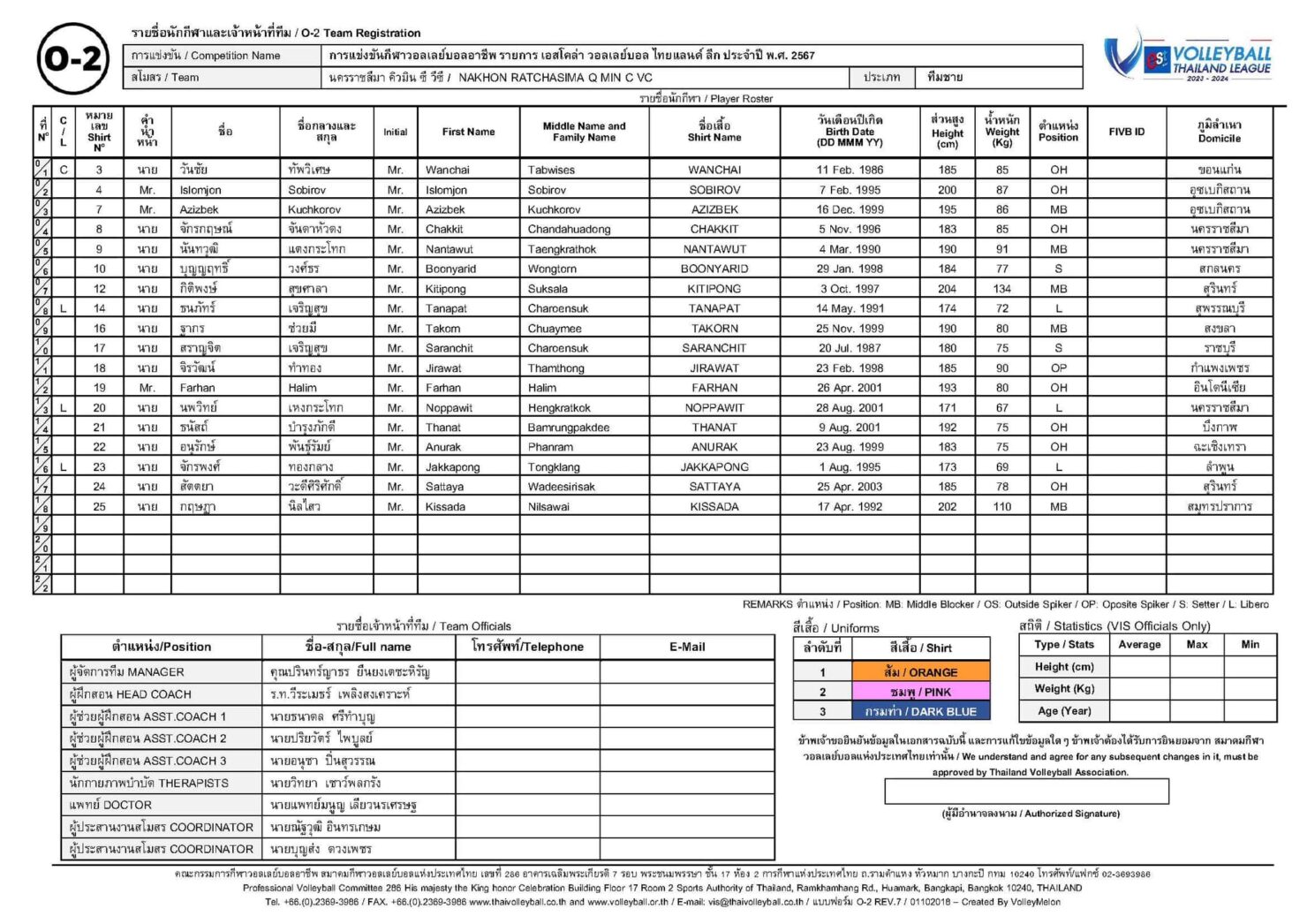วันที่ 6 พ.ย. 2023 ทางเพจ Volleyball Thailand League ได้ออกมาเปิดเผยรายชื่อนักกีฬาและเจ้าหน้าที่ทีม รายการ เอสโคล่า วอลเลย์บอล ไทยแลนด์ ลีก ประจำปี 2567 อย่างเป็นทางการ