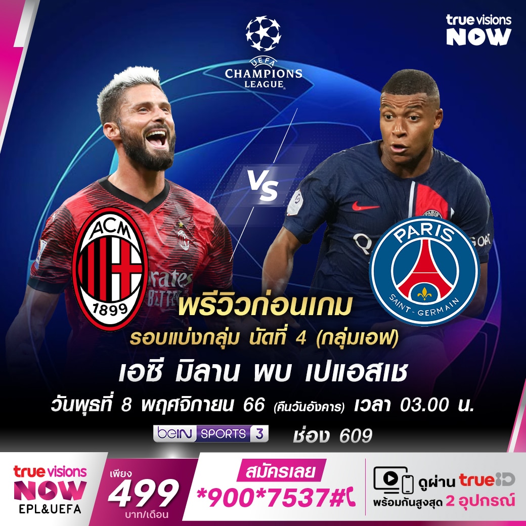 มิลาน VS เปแอสเช ลิงก์ถูกลิขสิทธิ์ ดูบอลสด ออนไลน์ ฟุตบอล ยูฟ่า แชมเปี้ยนส์ลีก