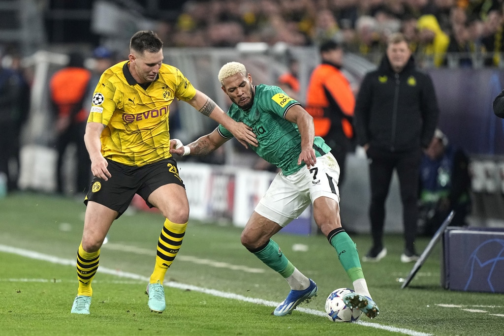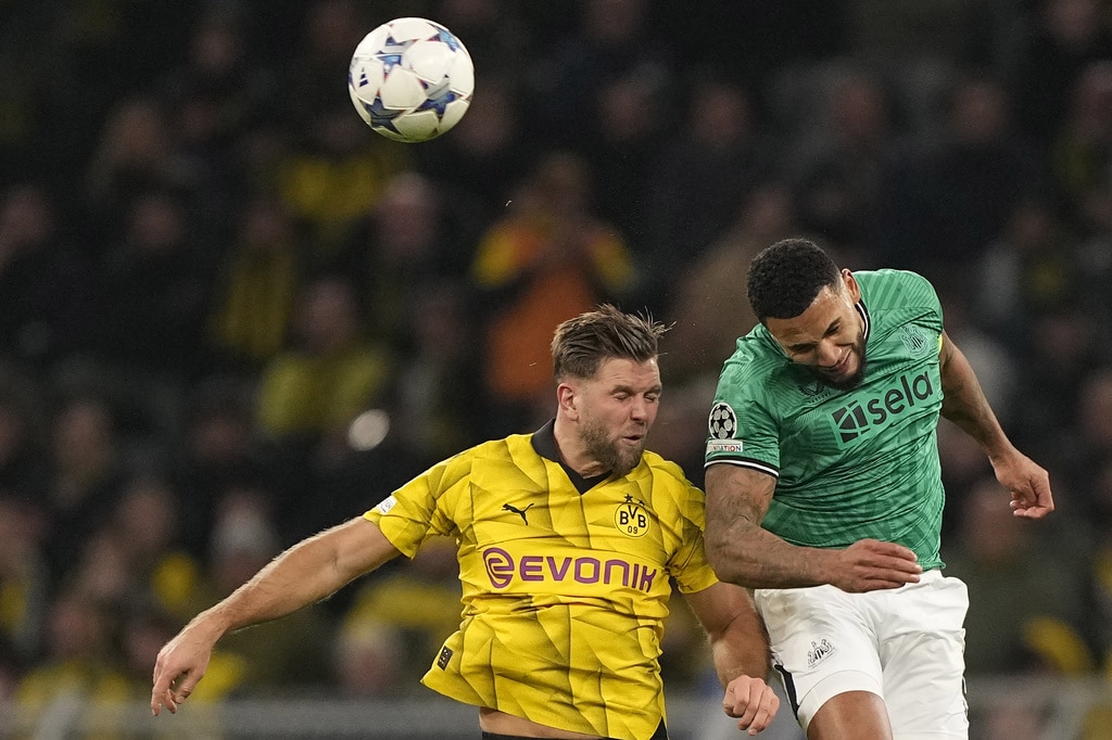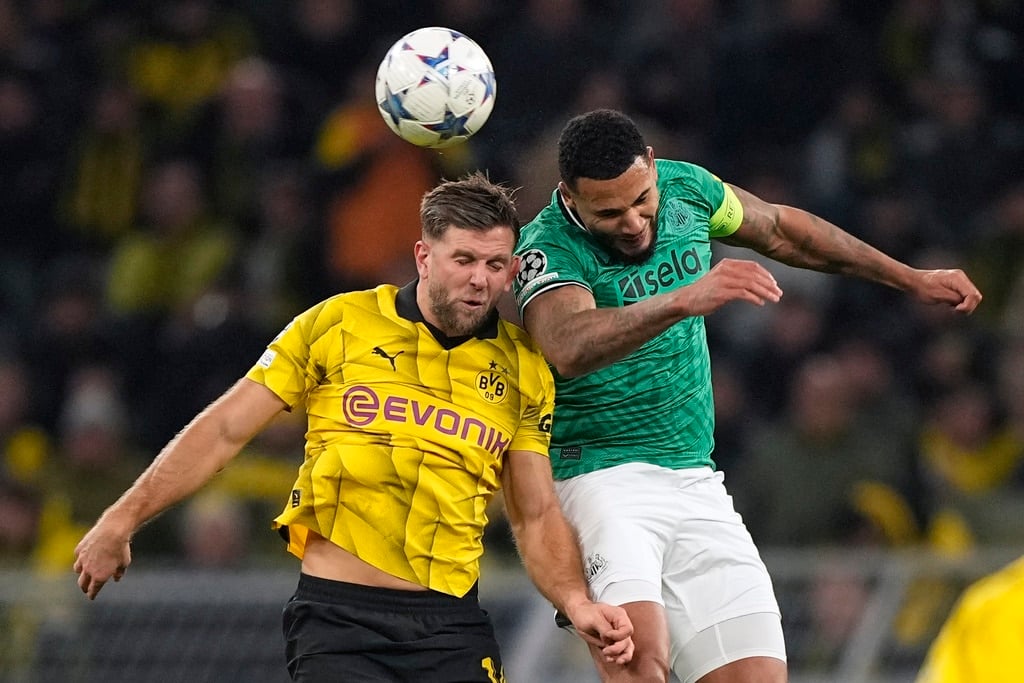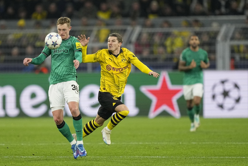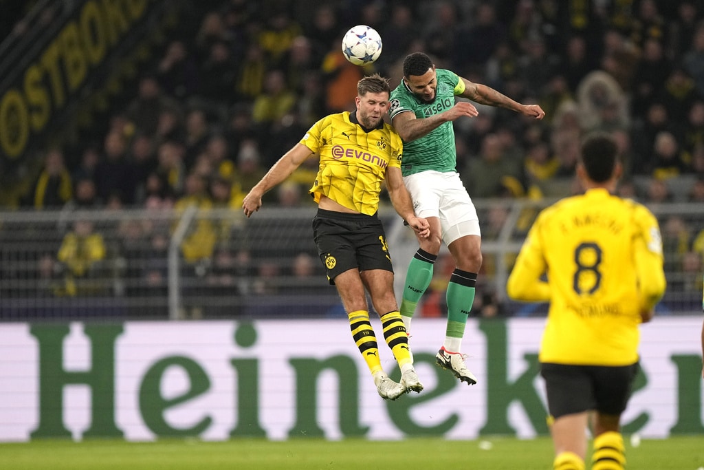 Dortmund’s Niclas Fuellkrug, left, and Newcastle’s Jamaal Lascelles jump for the ball during the Champions League Group F soccer match between Borussia Dortmund and Newcastle United in Dortmund, Germany, Tuesday, Nov. 7, 2023. (AP Photo/Martin Meissner)Newcastle’s Sean Longstaff, left, and Dortmund’s Marcel Sabitzer vie for the ball during the Champions League Group F soccer match between Borussia Dortmund and Newcastle United in Dortmund, Germany, Tuesday, Nov. 7, 2023. (AP Photo/Martin Meissner)Newcastle’s head coach Eddie Howe reacts during the Champions League Group F soccer match between Borussia Dortmund and Newcastle United in Dortmund, Germany, Tuesday, Nov. 7, 2023. (AP Photo/Martin Meissner)Dortmund’s team celebrates with supporters after the Champions League Group F soccer match between Borussia Dortmund and Newcastle United in Dortmund, Germany, Tuesday, Nov. 7, 2023. (AP Photo/Martin Meissner)Dortmund’s Mats Hummels, left, and Felix Nmecha celebrate their win against Newcastle after the end of the Champions League Group F soccer match between Borussia Dortmund and Newcastle United in Dortmund, Germany, Tuesday, Nov. 7, 2023. Dortmund won the game 2-0. (AP Photo/Martin Meissner)Newcastle’s Miguel Almiron reacts after the end of the Champions League Group F soccer match between Borussia Dortmund and Newcastle United in Dortmund, Germany, Tuesday, Nov. 7, 2023. Dortmund won the game 2-0. (AP Photo/Martin Meissner)Dortmund’s players celebrate their win against Newcastle after the end of the Champions League Group F soccer match between Borussia Dortmund and Newcastle United in Dortmund, Germany, Tuesday, Nov. 7, 2023. Dortmund won the game 2-0. (AP Photo/Martin Meissner)Dortmund’s goalkeeper Gregor Kobel jumps for the ball during the Champions League Group F soccer match between Borussia Dortmund and Newcastle United in Dortmund, Germany, Tuesday, Nov. 7, 2023. (AP Photo/Martin Meissner)Newcastle’s Joelinton, right, and Dortmund’s Niklas Suele vie for the ball during the Champions League Group F soccer match between Borussia Dortmund and Newcastle United in Dortmund, Germany, Tuesday, Nov. 7, 2023. (AP Photo/Martin Meissner)Dortmund’s Julian Brandt, second rear right, celebrates with his teammates after scoring against Newcastle during the Champions League Group F soccer match between Borussia Dortmund and Newcastle United in Dortmund, Germany, Tuesday, Nov. 7, 2023. (AP Photo/Martin Meissner)Dortmund’s Mats Hummels, right, and Newcastle’s Joe Willock, left, fight for the ball during the Champions League Group F soccer match between Borussia Dortmund and Newcastle United in Dortmund, Germany, Tuesday, Nov. 7, 2023. (AP Photo/Martin Meissner)Dortmund’s Niclas Fuellkrug, left, and Newcastle’s Jamaal Lascelles jump for the ball during the Champions League Group F soccer match between Borussia Dortmund and Newcastle United in Dortmund, Germany, Tuesday, Nov. 7, 2023. (AP Photo/Martin Meissner)Newcastle’s Joelinton is seen on the ground, reacts during the Champions League Group F soccer match between Borussia Dortmund and Newcastle United in Dortmund, Germany, Tuesday, Nov. 7, 2023. (AP Photo/Martin Meissner)Dortmund’s Niclas Fuellkrug, left, and Newcastle’s Jamaal Lascelles jump for the ball during the Champions League Group F soccer match between Borussia Dortmund and Newcastle United in Dortmund, Germany, Tuesday, Nov. 7, 2023. (AP Photo/Martin Meissner)Newcastle’s Sean Longstaff, left, and Dortmund’s Marcel Sabitzer vie for the ball during the Champions League Group F soccer match between Borussia Dortmund and Newcastle United in Dortmund, Germany, Tuesday, Nov. 7, 2023. (AP Photo/Martin Meissner)Newcastle’s Bruno Guimaraes, on the ground, fights for the ball with Dortmund’s Felix Nmecha for the ball during the Champions League Group F soccer match between Borussia Dortmund and Newcastle United in Dortmund, Germany, Tuesday, Nov. 7, 2023. (AP Photo/Martin Meissner)Newcastle’s Kieran Trippier, right, and Dortmund’s Julian Ryerson vie for the ball during the Champions League Group F soccer match between Borussia Dortmund and Newcastle United in Dortmund, Germany, Tuesday, Nov. 7, 2023. (AP Photo/Martin Meissner)