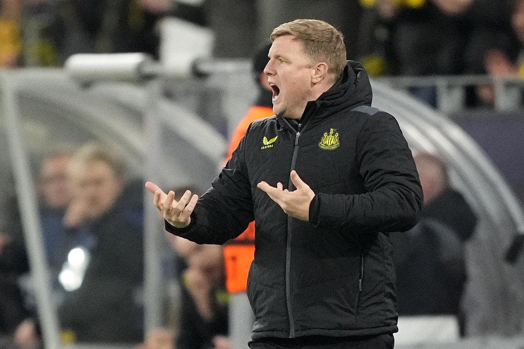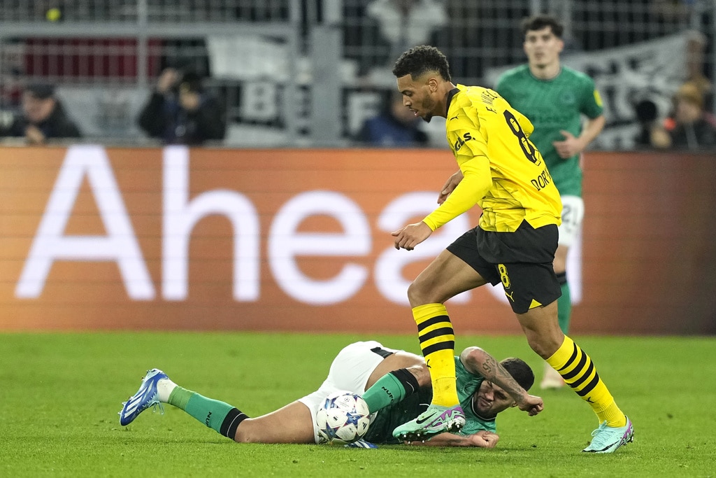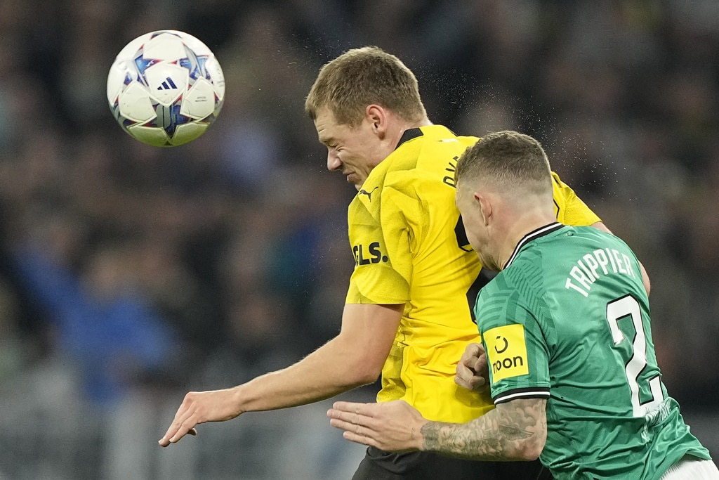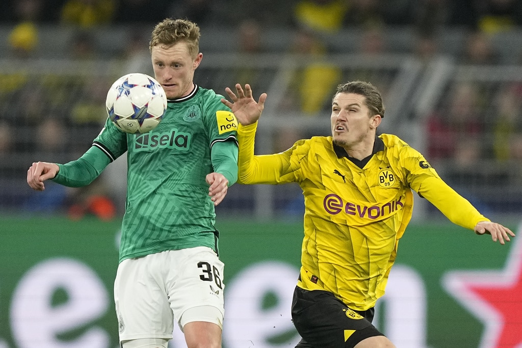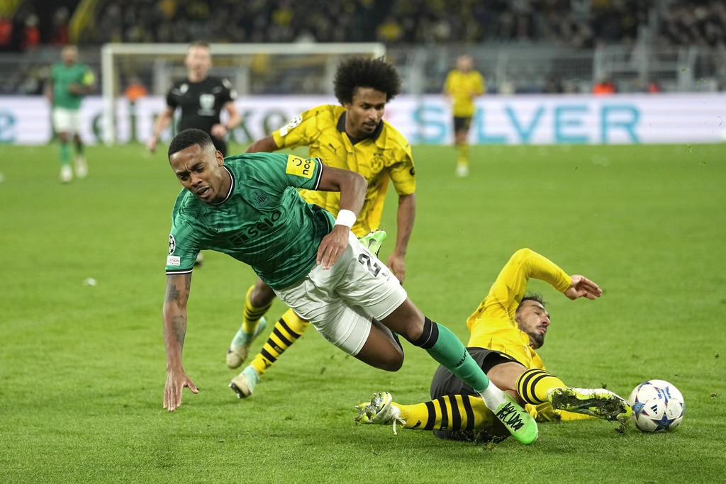 Dortmund’s Niclas Fuellkrug, left, and Newcastle’s Jamaal Lascelles jump for the ball during the Champions League Group F soccer match between Borussia Dortmund and Newcastle United in Dortmund, Germany, Tuesday, Nov. 7, 2023. (AP Photo/Martin Meissner)Newcastle’s Sean Longstaff, left, and Dortmund’s Marcel Sabitzer vie for the ball during the Champions League Group F soccer match between Borussia Dortmund and Newcastle United in Dortmund, Germany, Tuesday, Nov. 7, 2023. (AP Photo/Martin Meissner)Newcastle’s head coach Eddie Howe reacts during the Champions League Group F soccer match between Borussia Dortmund and Newcastle United in Dortmund, Germany, Tuesday, Nov. 7, 2023. (AP Photo/Martin Meissner)Dortmund’s team celebrates with supporters after the Champions League Group F soccer match between Borussia Dortmund and Newcastle United in Dortmund, Germany, Tuesday, Nov. 7, 2023. (AP Photo/Martin Meissner)Dortmund’s Mats Hummels, left, and Felix Nmecha celebrate their win against Newcastle after the end of the Champions League Group F soccer match between Borussia Dortmund and Newcastle United in Dortmund, Germany, Tuesday, Nov. 7, 2023. Dortmund won the game 2-0. (AP Photo/Martin Meissner)Newcastle’s Miguel Almiron reacts after the end of the Champions League Group F soccer match between Borussia Dortmund and Newcastle United in Dortmund, Germany, Tuesday, Nov. 7, 2023. Dortmund won the game 2-0. (AP Photo/Martin Meissner)Dortmund’s players celebrate their win against Newcastle after the end of the Champions League Group F soccer match between Borussia Dortmund and Newcastle United in Dortmund, Germany, Tuesday, Nov. 7, 2023. Dortmund won the game 2-0. (AP Photo/Martin Meissner)Dortmund’s goalkeeper Gregor Kobel jumps for the ball during the Champions League Group F soccer match between Borussia Dortmund and Newcastle United in Dortmund, Germany, Tuesday, Nov. 7, 2023. (AP Photo/Martin Meissner)Newcastle’s Joelinton, right, and Dortmund’s Niklas Suele vie for the ball during the Champions League Group F soccer match between Borussia Dortmund and Newcastle United in Dortmund, Germany, Tuesday, Nov. 7, 2023. (AP Photo/Martin Meissner)Dortmund’s Julian Brandt, second rear right, celebrates with his teammates after scoring against Newcastle during the Champions League Group F soccer match between Borussia Dortmund and Newcastle United in Dortmund, Germany, Tuesday, Nov. 7, 2023. (AP Photo/Martin Meissner)Dortmund’s Mats Hummels, right, and Newcastle’s Joe Willock, left, fight for the ball during the Champions League Group F soccer match between Borussia Dortmund and Newcastle United in Dortmund, Germany, Tuesday, Nov. 7, 2023. (AP Photo/Martin Meissner)Dortmund’s Niclas Fuellkrug, left, and Newcastle’s Jamaal Lascelles jump for the ball during the Champions League Group F soccer match between Borussia Dortmund and Newcastle United in Dortmund, Germany, Tuesday, Nov. 7, 2023. (AP Photo/Martin Meissner)Newcastle’s Joelinton is seen on the ground, reacts during the Champions League Group F soccer match between Borussia Dortmund and Newcastle United in Dortmund, Germany, Tuesday, Nov. 7, 2023. (AP Photo/Martin Meissner)Dortmund’s Niclas Fuellkrug, left, and Newcastle’s Jamaal Lascelles jump for the ball during the Champions League Group F soccer match between Borussia Dortmund and Newcastle United in Dortmund, Germany, Tuesday, Nov. 7, 2023. (AP Photo/Martin Meissner)Newcastle’s Sean Longstaff, left, and Dortmund’s Marcel Sabitzer vie for the ball during the Champions League Group F soccer match between Borussia Dortmund and Newcastle United in Dortmund, Germany, Tuesday, Nov. 7, 2023. (AP Photo/Martin Meissner)Newcastle’s Bruno Guimaraes, on the ground, fights for the ball with Dortmund’s Felix Nmecha for the ball during the Champions League Group F soccer match between Borussia Dortmund and Newcastle United in Dortmund, Germany, Tuesday, Nov. 7, 2023. (AP Photo/Martin Meissner)Newcastle’s Kieran Trippier, right, and Dortmund’s Julian Ryerson vie for the ball during the Champions League Group F soccer match between Borussia Dortmund and Newcastle United in Dortmund, Germany, Tuesday, Nov. 7, 2023. (AP Photo/Martin Meissner)