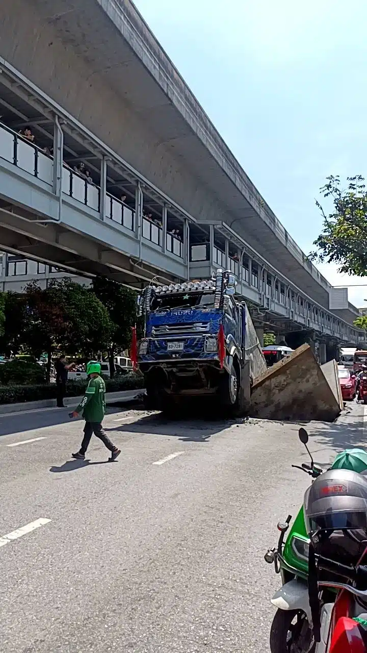 11.41 น. ถนนสุขุมวิท ขาเข้า ถนนทรุดตัว รถบรรทุกท้ายตกหน้าลอย ปากซอยสุขุมวิท 64/1 การจราจรติดขัดแล้ว ท้ายเริ่มสะสมเต็มแยกบางนา #รถติด #รายงานจราจร pic.twitter.com/5vywwQeRuA