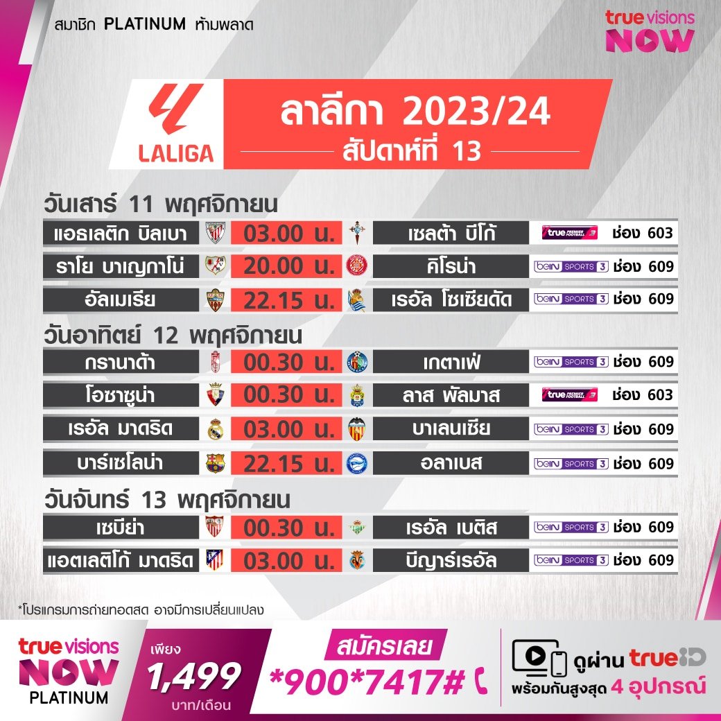 ขอบคุณข้อมูลจาก : Laliga / True Visions