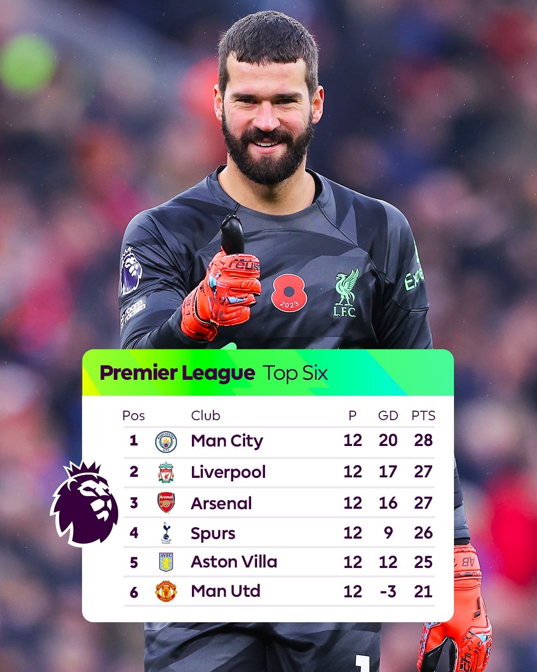 ตารางคะแนนประจำวันที่ 13 พฤศจิกายน 2023 หลังผ่านไป 12 เกม ก่อนเข้าสู่ช่วงพักเบรกทีมชาติในอาทิตย์หน้า สถานการณ์ยังคงเป็น แมนซิตี้ แชมป์เก่า ที่นำอยู่ด้วยการมี 28 คะแนน แม้จะสะดุดเสมอเชลซีในนัดล่าสุดก็ตาม ส่วนที่น่าสนใจก็คือ “หงส์แดง” ลิเวอร์พูล ที่ขยับแซงขึ้นมารั้งที่สองแล้ว โดยมีคะแนนเท่ากับ “ปืนใหญ่” อาร์เซน่อล แต่ประตูได้เสียดีกว่า