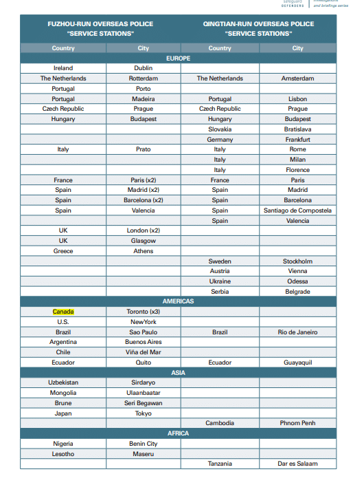 และยังมีรายงานจากข้อกล่าวหาของ Safeguard Defenders ว่าตำรวจจีนถูกส่งไปต่างแดนเพื่อสอดแนม-รวบตัวพวกที่ตำรวจจีนตามตัวอยู่ทั้งด้านการเมืองและอาชญากรรม