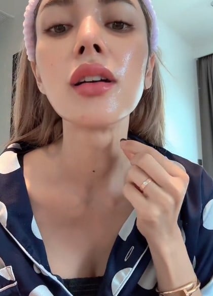 ก็ยอมรับนะว่า 40 แล้วมันก็ต้องมีกันบ้าง แต่เราก็บำรุงขั้นสุดเหมือนกันนะ แต่คอมันเป็นอะไรที่ทำยาก คอกับหลังมือ มันคือผิวหลัง ไม่มีไขมันเลย มันก็เลยติดไปเลยกับกระดูก มันไม่ได้ดึงจากไขมัน แต่มันตึงจากผิวหนังที่มันไม่ไขมัน เหนียงก็ไม่มี อะถ้าก้มแบบนี้จะมีนิดนึงแต่ถือว่าน้อยมาก เพราะเป็นคนที่ลีนไงคะ