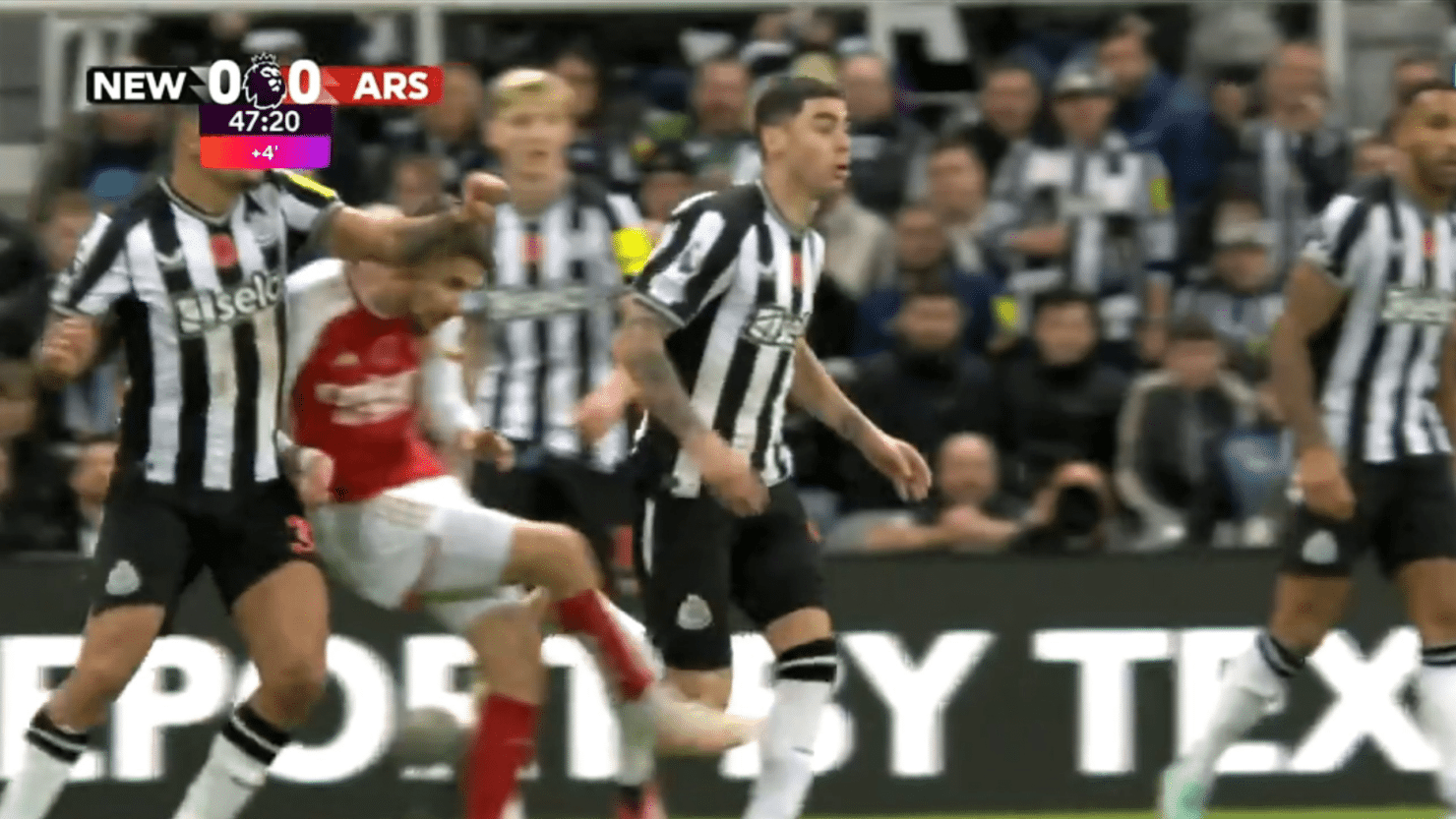 The VAR check for Bruno Guimarães' elbow on Jorginho.pic.twitter.com/91ptGUqCJj