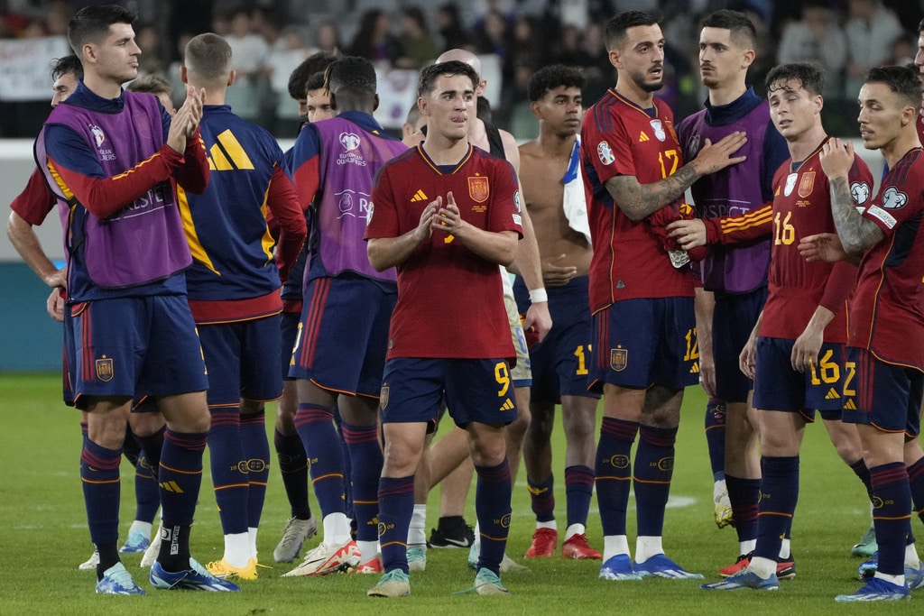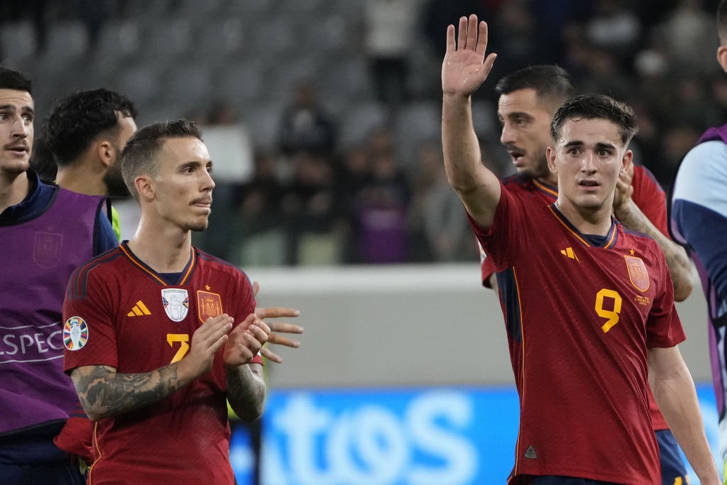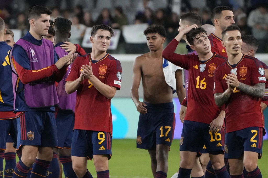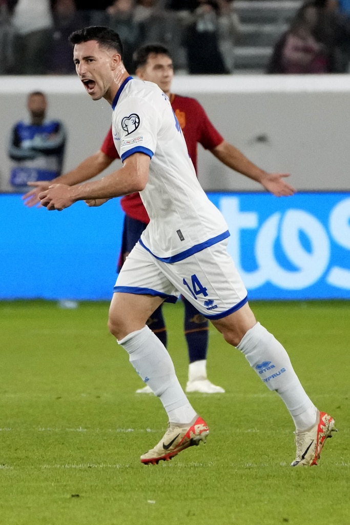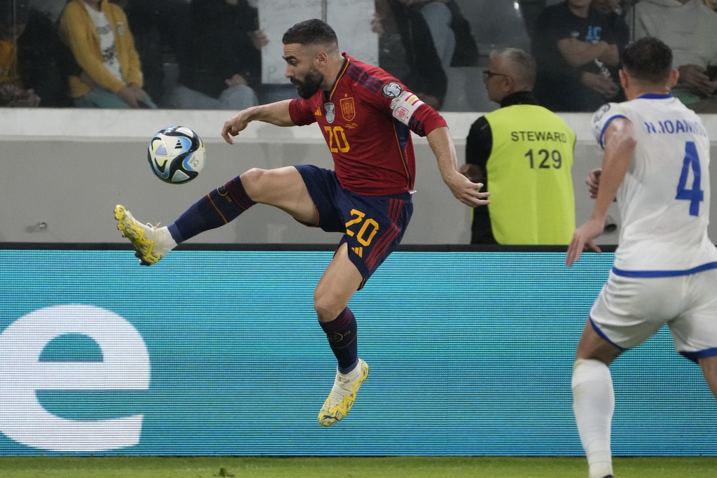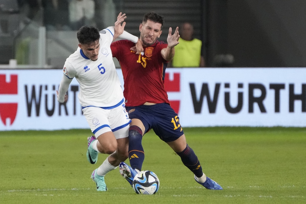 2023-11-16 Partido de la fase de clasificación para la EURO 2024 entre las selecciones de Chipre y España en el Limassol Stadium SOLO USO EDITORIAL, SOLO DISPONIBLE PARA ILUSTRAR LA NOTICIA QUE ACOMPAÑA (CRÉDITO OBLIGATORIO) FOTO RFEFSpain players celebrate at the end of an Euro 2024 group A qualifying soccer match between Cyprus and Spain, at the Alphamega Stadium stadium in Limassol, Cyprus Thursday, Nov. 16, 2023. (AP Photo/Petros Karadjias)Spain players celebrate at the end of an Euro 2024 group A qualifying soccer match between Cyprus and Spain, at the Alphamega Stadium stadium in Limassol, Cyprus Thursday, Nov. 16, 2023. (AP Photo/Petros Karadjias)Cyprus’s Charalampos Charalampous, left, challenges for the ball with Spain’s David García Zubiria during an Euro 2024 group A qualifying soccer match between Cyprus and Spain, at the Alphamega Stadium stadium in Limassol, Cyprus, Thursday, Nov. 16, 2023. (AP Photo/Petros Karadjias)Spain’s Daniel Carvajal controls the ball during an Euro 2024 group A qualifying soccer match between Cyprus and Spain, at the Alphamega Stadium stadium in Limassol, Cyprus Thursday, Nov. 16, 2023. (AP Photo/Petros Karadjias)Cyprus’s Kostas Pilea celebrates after scoring his sides first goal during an Euro 2024 group A qualifying soccer match between Cyprus and Spain, at the Alphamega Stadium stadium in Limassol, Cyprus Thursday, Nov. 16, 2023. (AP Photo/Petros Karadjias)Spain’s coach Luis De La Fuente gestures during an Euro 2024 group A qualifying soccer match between Cyprus and Spain, at the Alphamega Stadium stadium in Limassol, Cyprus, Thursday, Nov. 16, 2023. (AP Photo/Petros Karadjias)Spain supporters celebrate at the end of an Euro 2024 group A qualifying soccer match between Cyprus and Spain, at the Alphamega Stadium stadium in Limassol, Cyprus, Thursday, Nov. 16, 2023. (AP Photo/Petros Karadjias)