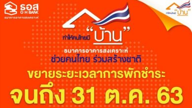 ธอส. ขยายเวลาพักชำระหนี้ ถึง 31 ตุลาคม 63 พร้อม 3 มาตรการใหม่