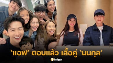 ‘แอฟ ทักษอร’ ตอบแล้ว ถูกแซวใส่เสื้อคู่ ‘นนกุล’ ออกสื่อ บังเอิญหรือตั้งใจ