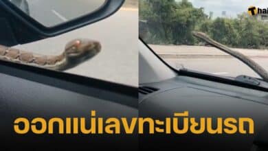 ขนลุก งูเลื้อยขึ้นรถ คอหวยแห่ส่องเลขทะเบียน ใกล้หวยออก