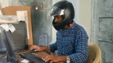 พนักงานสวมหมวกกันน็อคทำงาน ภายในที่ทำการรัฐอินเดีย เผยสาเหตุทำไปทำไม? (คลิป)