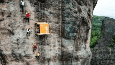 รู้จัก ‘ร้านสะดวกซื้อ’ ที่ไม่สะดวกที่สุดในโลก ถูกแขวนไว้บนข้างเขา (คลิป)