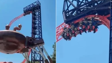 สยอง! รถไฟเหาะค้าง นักท่องเที่ยวห้อยหัวติดอยู่ในเครื่องนานครึ่งชั่วโมง