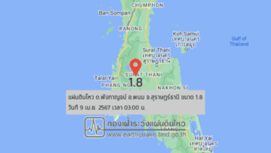 แผ่นดินไหวสุราษฎร์ธานี ขนาด 1.8 กลางดึก ยังไม่มีรายงานความเสียหาย