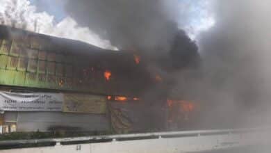 ด่วน! ไฟไหม้ตลาดศาลาน้ำร้อน ใกล้โรงพยาบาลศิริราช ล่าสุดเพลิงสงบแล้ว