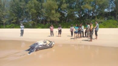 เศร้า แม่เต่ามะเฟืองตายเกยตื้นหาด จ.พังงา ถูกเชือกพันคอ