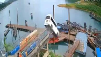 สุดระทึก รถตู้พุ่งตกเขื่อนรัชชประภา ชาวบ้านและเจ้าหน้าที่ช่วยคนขับขึ้นได้ทัน ตำรวจเผยสาเหตุ รถเกิดอาการเบรกติดขัด คุมรถไม่ได้ กลายเป็นเหตุระทึก หลังจากที่กล้องวงจรปิดบริเวณท่าเรือท่องเที่ยว อ่างเก็บน้