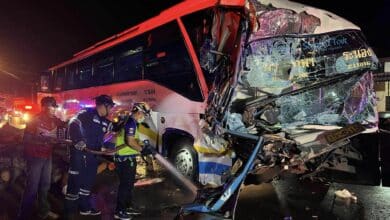รถทัวร์ชนสนั่น คนขับ-พนักงานถูกอัดก๊อปปี้ดับคาที่ บาดเจ็บอีกหลายราย