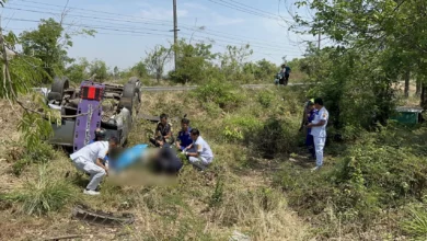 รถพุ่งลงร่องกลางถนน จุดเดียวกันกับ ‘วงมหาหิงค์’ ถูกไม้แทงศีรษะเสียชีวิต