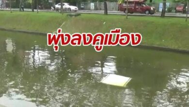 หนุ่มเชียงใหม่ โดนเก๋งเบียด จนเสียหลักพุ่งลงคูเมืองเชียงใหม่