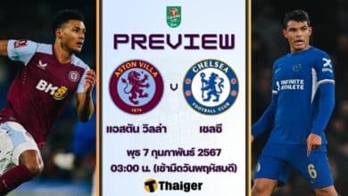 7 กุมภาพันธ์ 67 เวลา 03.00 น. ถ่ายทอดสด ดูบอลสด ฟุตบอล เอฟเอ คัพ ฤดูกาล 2023/24 รอบ 4 หรือรอบ 32 ทีมสุดท้าย นัดรีเพลย์ แอสตัน วิลล่า พบ เชลซี The Thaiger พาไปวิเคราะห์ก่อนเกม และการคาดการณ์ 11 ตัวจริง