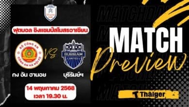 14 พฤษภาคม 2568 เวลา 19.30 น. ฟุตบอลชิงแชมป์สโมสรอาเซียน Shopee Cup 2024/25 รอบชิงชนะเลิศ นัดแรก กง อัน ฮานอย เอฟซี พบ บุรีรัมย์ ยูไนเต็ด The Thaiger พาวิเคราะห์ก่อนเกม พร้อมคาดการณ์ 11 ตัวจริง และรับ