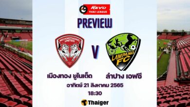 ผลบอลสด เมืองทอง ยูไนเต็ด พบ ลำปาง เอฟซี รีโว่ ไทยลีก