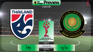 ถ่ายทอดสดบอลไทย ไทย พบ บรูไน ฟุตบอล U16 ชิงแชมป์อาเซียน 2022