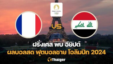 ผลบอลสด ฝรั่งเศส พบ อียิปต์ ฟุตบอลชาย โอลิมปิก 2024 รอบรองชนะเลิศ วันที่ 5 ส.ค. 67