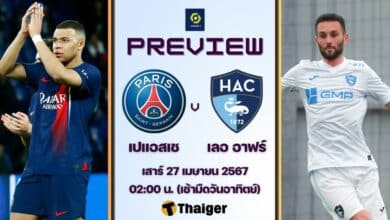 27 เมษายน 2567 เวลา 02.00 น. ถ่ายทอดสด ดูบอลสด ฟุตบอล ลีกเอิง ฝรั่งเศส ฤดูกาล 2023/24 ที่สนาม ปาร์ก เดส์ แพร็งซ์ : เปแอสเช จะลงเล่นพบกับทีม เลอ อาฟร์ The Thaiger พาไปวิเคราะห์เกม พร้อมการทำนายผล และคา