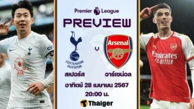 28 เมษายน 2567 เวลา 20.00 น. ถ่ายทอดสด ฟุตบอล พรีเมียร์ลีก ฤดูกาล 2023/24 นัดที่ 35 ที่สนาม ท็อตแน่ม ฮอตสเปอร์ สเตเดี้ยม : สเปอร์ส จะลงเล่นพบกับ อาร์เซน่อล The Thaiger พาไปวิเคราะห์เกม พร้อมการทำนายผล