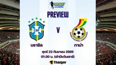 ศึกฟุตบอล กระชับมิตร ในโปรแกรมทีมชาติ เป็นการเจอกันของ “แซมบ้า” บราซิล เกมนี้จะพบกับ กาน่า อีกหนึ่งทีมแกร่งจากแอฟริกา นัดนี้แข่งที่ประเทศฝรั่งเศส ดูบอลสด วันศุกร์ที่ 23 กันยายน เวลา 01.30