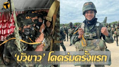 คลิปสุดเสียว “บัวขาว” นำทีมเพื่อนทหาร โดดร่มครั้งแรก ใจเต้นยิ่งกว่าต่อยมวย