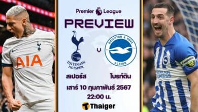 สเปอร์ส พบ ไบรท์ตัน ดูบอลสด ฟุตบอล พรีเมียร์ลีก พร้อมช่องถ่ายทอดสด