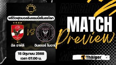 15 มิถุนายน 2568 เวลา 07.00 น. ถ่ายทอดสด ดูบอลสด ฟุตบอลชิงแชมป์สโมสรโลก 2025 ที่สนาม ฮาร์ด ร็อค สเตเดี้ยม อัล อาห์ลี พบ อินเตอร์ ไมอามี่ The Thaiger พาไปวิเคราะห์เกม พร้อมการทำนายผล และคาดการณ์ 11 ตัว