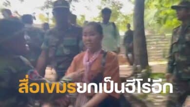 สื่อเขมรแห่อวย ”หญิงชี้หน้าด่า“ ทหารไทย ยกฮีโร่ชายแดน ปราสาทเมือนธม