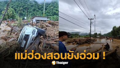 เปิดภาพ แม่ฮ่องสอนเซ่นพิษน้ำป่า น้ำลดแต่ท่อนไม้ใหญ่ขวางถนน เช็กพื้นที่เสี่ยง