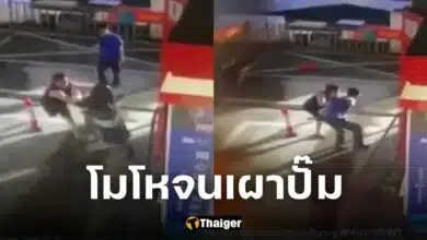 โหดเกินพ่อ หนุ่มจีนทะเลาะเด็กปั๊ม บิดมอเตอร์ไซต์ชนหัวจ่ายไฟลุก ก่อนใส่เกียร์หมาหนีความผิด