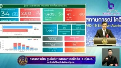อัพเดท 14 เมษายน ไทยติดเชื้อเพิ่ม 34 ราย เสียชีวิต 1