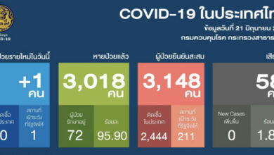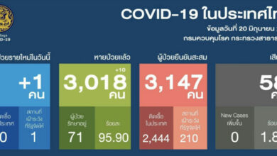 โควิด-19 20 มิ.ย. ไทยพบผู้ติดเชื้อเพิ่ม 1 ราย