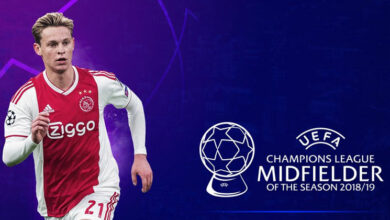 แฟรงกี้ เดอ ยอง กองกลางดาวรุ่งของ ‘เจ้าบุญทุ่ม’ บาร์เซโลน่า คว้ารางวัล กองกลางยอดเยี่ยมประจำฤดูกาล 2018-2019 ของยูฟ่า เบียดเอาชนะทั้ง คริสเตียน เอริคเซ่น ของ ‘ไก่เดือยทอง’ ท็อต